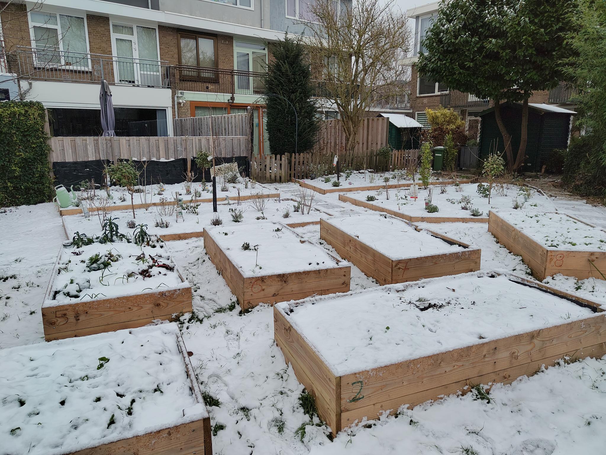 Moestuin in de sneeuw januari 2026
